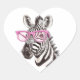 Zebra mit rosa Brille Herz-Aufkleber