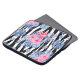 Ein modernes Schwarz-Weiß-Zebraprint überlagert mit einem tropisch-rosa und blauen Hibiskus und Flamingo-Muster.