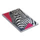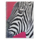Ein Notizbuch mit einem Zebraentwurf auf ihm mit einem reizenden rosa Hintergrund und auf ihm ist ein Zebra.