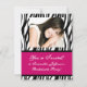 Funky schwarz-weißer Zebrahintergrund mit heißen rosa Akzenten. Diese fette Karte kann als Ankündigung und oder Einladung für ein lustiges Party jeder Art verwendet werden! Teilen Sie Ihr gesellschaftliches Ereignis mit diesem hellen Design.