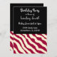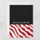 Ein schwarzer Hintergrund, der durch einen Rahmen aus rotem und cremefarbenem Zebradruck hervorgehoben wird. Passen Sie Ihre Geburtstagsdaten nach Wunsch an.