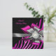 Zebra Pink Black Silver Bow Pearl Birthday Party Einladung