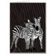 Ein digitales Bild von zwei Zebras auf spielerische Weise, mit braunem gestreiften Hintergrund. Hinweis: Dieses Design passt gut zu einer vertikalen oder horizontalen Karte.