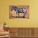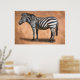 Ein Foto eines wunderschönen Zebra auf einem Buckskin-Hintergrund.
