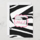 Eine Einladung zum Abschluss mit einem schwarz-weißen Zebra-Hintergrund auf Vorder- und Rückseite. Vorderseite mit rosa und schwarz "Class of 2011" Textdesign mit schwarzem Graduierungsdeckel in rosa Klapprahmen. Personalisieren Sie die gegenüberliegende Seite mit Details Ihrer Gelegenheit.