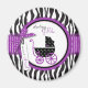 Zebradruck im Stil der Boutique mit hellen violetten Akzenten und einem Baby-Kutschenduschmagnet.