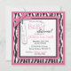 Wilder und süßer Zebradruck mit heißen rosafarbenen Akzenten und Polka Dot Babywalze mit 3D-Anhänger, Bogen und Trims Baby Girl Duscheinladungskarte.