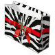 Große, glänzende Geschenktasche mit einem beeindruckenden Schwarz-Weiß-Zebradruck und optionalem roten Band, rotem Bogen und goldenem Zebracharm. Siehe dazu passende mittlere Geschenktasche. Sehen Sie sich die gesamte Safari-Geschenkbeutel-Sammlung in den SPEZIELLEN TOUCHS an. | Abschnitt Gastgeschenke.