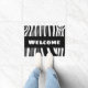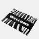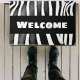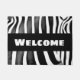 Zebra drucken mit fett gedrucktem Text "Willkommen". Funky Doormat in Schwarz und Weiß mit der Originalkunst von Alma Wad . Großartig auf jeder modernen Zuhause, wo Retro-Stilelemente geschätzt werden.