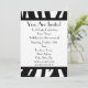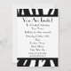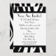 Eine einfache Einladung mit einem zebrafarbenen Design über den oberen und unteren Rand. Schwarzer und schwarzer Pariser Schriftart. Passen Sie Ihre Wünsche an. Gegenüber ist das solide Design mit kreisförmigen Formen in der Mitte, eingerahmter Text.