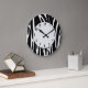 Custom Wall Clock hat ein lustiges Schwarz-Weiß-Muster an Streifen mit matisse Schriftart-Uhr Gesicht.