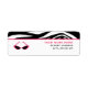 Ein Rücksendeetikett mit einem Zebrastreifen oben mit einem rosa Schnitt. Illustration einer Retro-Katzenauge rosa Sonnenbrille verlassen. Personalisieren Sie mit Ihrem Namen und Ihrer Adresse auf der rechten Seite.