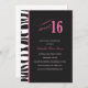 Diese 16 . Geburtstag Party Einladung zeichnet sich durch ein Zebramuster auf den verlassen, und "Sweet 16" in hübsch rosa Typografie aus. Ihre Party Details sitzen unten in Weiß vor dem schwarzen Hintergrund.