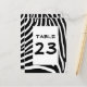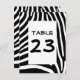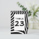 Zebra Streifen Muster in Schwarz-Weiß mit Platz für eine Tischnummer. Sie können das Wort "Tabelle" anpassen und löschen und die Zahl zentrieren.