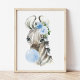Zebra, Safari, Blue Bubble Gum, Boy Kinderzimmer Poster