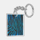 Zebra Schwarz und Blau mit Monogramm Schlüsselanhänger