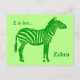 Niedliche Grafik eines Zebra in tiefgrüner und leichter Limoner Linse