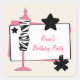 Ein Geburtstags-Partyaufkleber, der eine Illustration einer rosa Kleiderform trägt ein Zebradruckkleid kennzeichnet. Personifizieren Sie den Text. Look for zusammenpassende Geburtstags-Party Einladungen bei Jill Paperie.