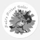Ein Zebra steht auf seinen Hinterbeinen und spielt begeistert Zither. Umgeben ist es der stylische Text "Zebra Zither Solo!".