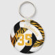 Dieser gürtelige Zebrastreifen-Volleyball-Schlüsselanhänger weist auf vier der Volleyballfelder ein wildes zebraaktives Farbmuster auf, das den übrigen Volleyballpanels in Schwarz/Weiß gegenübersteht - angepasst an Spielername und Jersey-Nummer in Gold - von katz_d_zynes