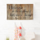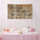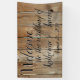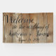 Land-schicke kundenspezifische Hochzeits-Willkommens-Fahne. Vorbereiteter Text auf Zedernzaunhintergrund. Addieren Sie Namen und Datum.