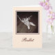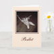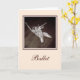 Elegante Zehenschuhe mit Bändchen-Erholung auf dem Holzboden eines Tanzstudios auf dieser farbenfrohen, weißen Grußkarte. Perfekt für gute Wünsche vor einer Performance, herzlichen Glückwunsch zu einer neuen Rolle oder jedem besondere Anlass für den Tänzer oder Tanzenthusiast in Ihrem Leben!