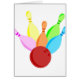 Einfache Veranschaulichung der farbenfrohen 10-Button-Bowling-Skittles, die von einem Bowlingball niedergeschlagen werden. Bilder auf verschiedenen Geschenken und Produkten erhältlich. Grußkarten. Kleine Grußkarten.