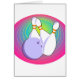 Drei Bowling-Skittles, die von einem Bowlingball niedergeschlagen werden.