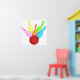 Einfache Veranschaulichung der farbenfrohen 10-Button-Bowling-Skittles, die von einem Bowlingball niedergeschlagen werden. Bilder auf verschiedenen Geschenken und Produkten erhältlich. Poster. Drucke.