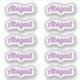 Set von zehn niedlichen Namensschildern in hübschem Schriftart mit Handschrift. Verwenden Sie sie, um Ihre Besitztümer zu dekorieren und zu kennzeichnen, einschließlich Make-up, Notebooks, Telefon und andere Elektronik, Wasserflasche und andere Dinge, die besser und hübsch mit Ihrem Namen auf ihnen aussehen. Das Design im hübschen Lavendel ist mit dunkleren Schattenlinien dekoriert, die ihm einen interessanten Look verleihen und Ihren Namen optisch zum Pop machen.
