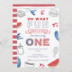Ein Rot-Weiß und Blau-Kochfeld oder im Freien erste Geburtstagseinladung Design geeignete Zwillinge oder Cousins / Familienfreunde sehr nah im Alter.