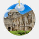 Einziges zweiseitiges Keramik-Ornament mit der Mission San José vorne und dem symbolischen "Zeichen des Glaubens" des Hofes auf der Rückseite. Ändern Sie das Datum des Jahres auf das aktuelle Datum.