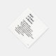 Leider ist beim Bestellvorgang nicht die Größe angegeben, zumindest habe ich es nicht gesehen. Der Name "Duschen"-Servietten ist etwas seltsam :-) Aber man kann aus verschiedenen Designs auswählen und es sieht ganz nett aus. Ich würde mir aber noch viel mehr verschiedene Farben und Muster wünschen! Insgesamt eine nette Idee für ein personalisiertes Accessoire zu allen möglichen Feiern. Der Druck ist OK, er ist nur ganz leicht unscharf.