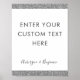 Silber graues Glitzer-Textschild ist ideal für Hochzeitsfeier, Bat Mitzvah, Sweet 16, Quince, Baby Shower, Brautparty und Geburtstagsparty Beschilderung.Oder erstellen Sie Ihr eigenes motivierend Zitat-Poster für das Büro. Erstellen Sie mehrere Versionen und Größen für jeden Ort, den Sie benötigen! * * * * * Klicken Sie auf ANKUNFT WEITERE Schriftart, Textfarbe und Platzierung ändern * * * * * Koordiniert mit unserer modernen Rose Gold Glitzer Invitation & Party Stationery Kollektion.