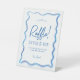 Mit diesem eleganten, blau-weiß verschickten Tischschild beenden Sie Ihr zeichn-Tisch-Setup. Handgezeichnete Aquarellrahmen, handgeschriebene Skript-Schriftart in den Farben Küstenblau und Weiß. Fügen Sie Ihre Logos und Logos oder Namen hinzu und machen Sie ein einzigartiges Lotteriezeichen für Ihre geschäftliche oder private Veranstaltung.