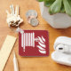 Feuerlöschschlauch und Flammensymbol auf rotem Hintergrund. Benutzerdefinierter Text auf der Rückseite.