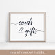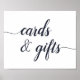Einfaches und elegantes Schild führt Sie zu Ihrer Karte oder Ihrem Geschenktisch. Enthält "Karten & Geschenke" in reich marineblauer Schriftzeichen.