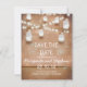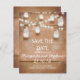 Perfekte Save the Date flache Karte mit rustikalem hellen Holzhintergrund, Saitenleuchten und glänzenden Mason-Gläsern. Bitte kontaktieren Sie mich, wenn Sie Hilfe bei der Anpassung benötigen oder eine individuelle Farbanfrage haben.