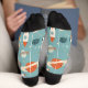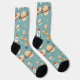 Ein blaues Muster-Socken-Design mit raumbezogenen Zeichnungen. Ideal für gemütliche Augenblicke und Science-Fiction-Liebhaber.