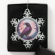 Zeichn eines Raben auf graublauem Hintergrund Schneeflocken Zinn-Ornament