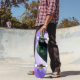 Zeichn eines Raben auf neonischem lila Hintergrund Skateboard