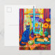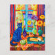 Zeichnen einer Katze auf Küchentisch nach Fenster Postkarte