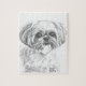 Wachsamer Shih tzu Hund skizziert in der Holzkohle vom Porträtkünstler Kate Sumners. Betiteltes "Emmy", dieser freundliche kleine Hund ist bereit zu spielen!