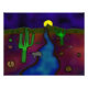 Ein zeichn einer friedlichen Dessertszene mit Schildkröte, Schlange und Warthog, die an einem Bach trinken. Ein Kojote heult auf dem Mond in der Ferne.
