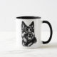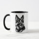 Schwarzweiß-zeichn eines deutschen Schäferhundes. (Deutscher Schäferhund) Traditioneller großer Hund seit 1899, sehr beliebt für Polizeiarbeit, Suche und Rettung und natürlich als Familienhund. Ist ziemlich aktiv und braucht etwas zu tun.