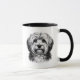 Schwarz-Weiß-zeichn eines Havanesen. Runde Augen, nasse Nase und flauschige Gänge überall. Genau wie Sie sich ein freundliches kleines Doggo vorstellen würden.