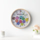 Diese Uhr, die Zahlen hat, ist mit einem zeichn von vielen Garnbällchen in einem Sortiment von hübschen Farben geschmückt. Die Wörter - Zeit zum Strick - stehen auf der Vorderseite, aber Sie können sie nach Ihren eigenen Worten oder Namen personalisieren. Der Hintergrund ist sehr hellgrau und die Zahlen sind schwarz. Das Kunstwerk stammt aus den LyricalSixties. Die Uhr würde schön in deinem Handwerkszimmer aussehen.