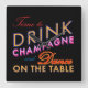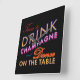 "Zeit, Champagner zu trinken und auf dem Tisch zu tanzen" betont diese niedliche Wanduhr.