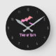 Zeit der Fledermäuse - Rosa und Lila Abstrakter Po Runde Wanduhr