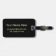 Schwarzes Gepäck, auf der Vorderseite ist cremefarbener Text, der "Zeit für Abenteuer" steht. Auf der Rückseite verwenden Sie die Vorlagen, um Ihren Namen und Ihre Details hinzuzufügen.